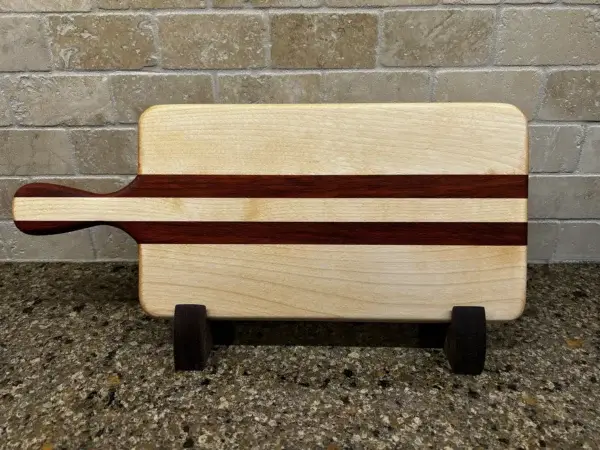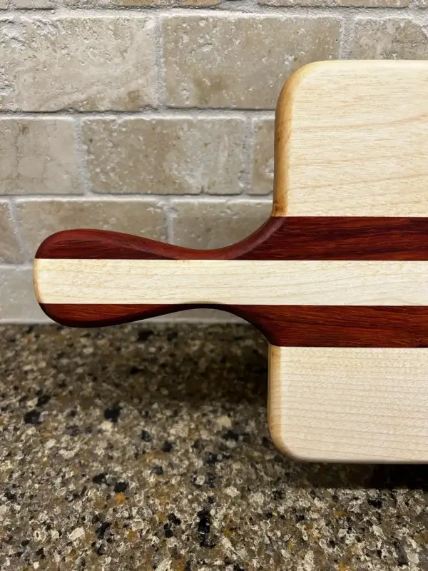 Introducing the Birch and Padauk Cutting/Serving Board – a versatile kitchen accessory that can be used as a cutting board, a serving board, or a charcuterie board.